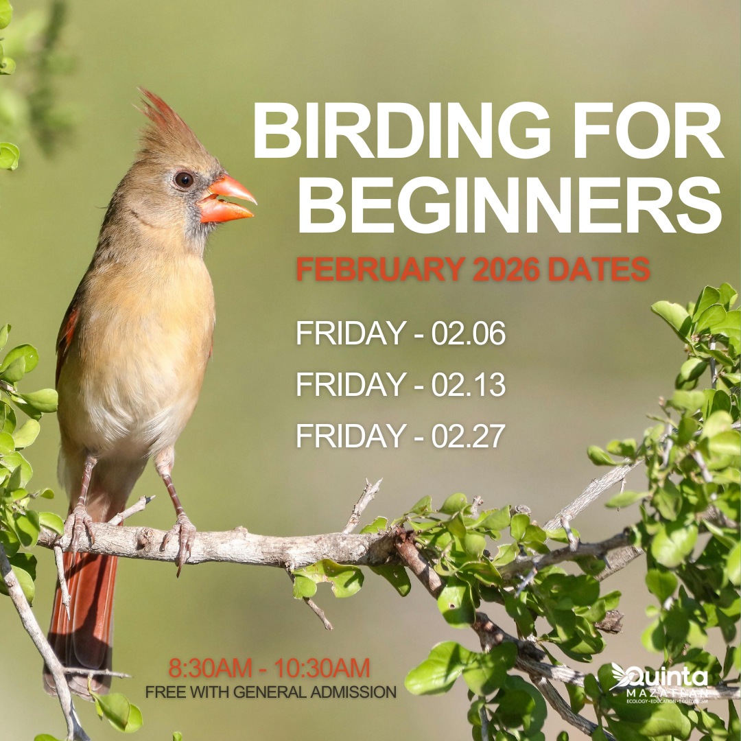 From binocular basics to bird calls and behavior, you'll leave this guided experience feeling more in-tune with our avian friends. Across the month of January, we'll be looking for Valley Specialty birds, like the Plain Chachalaca and Clay-colored Thrush, and hope to see some winter rarities.